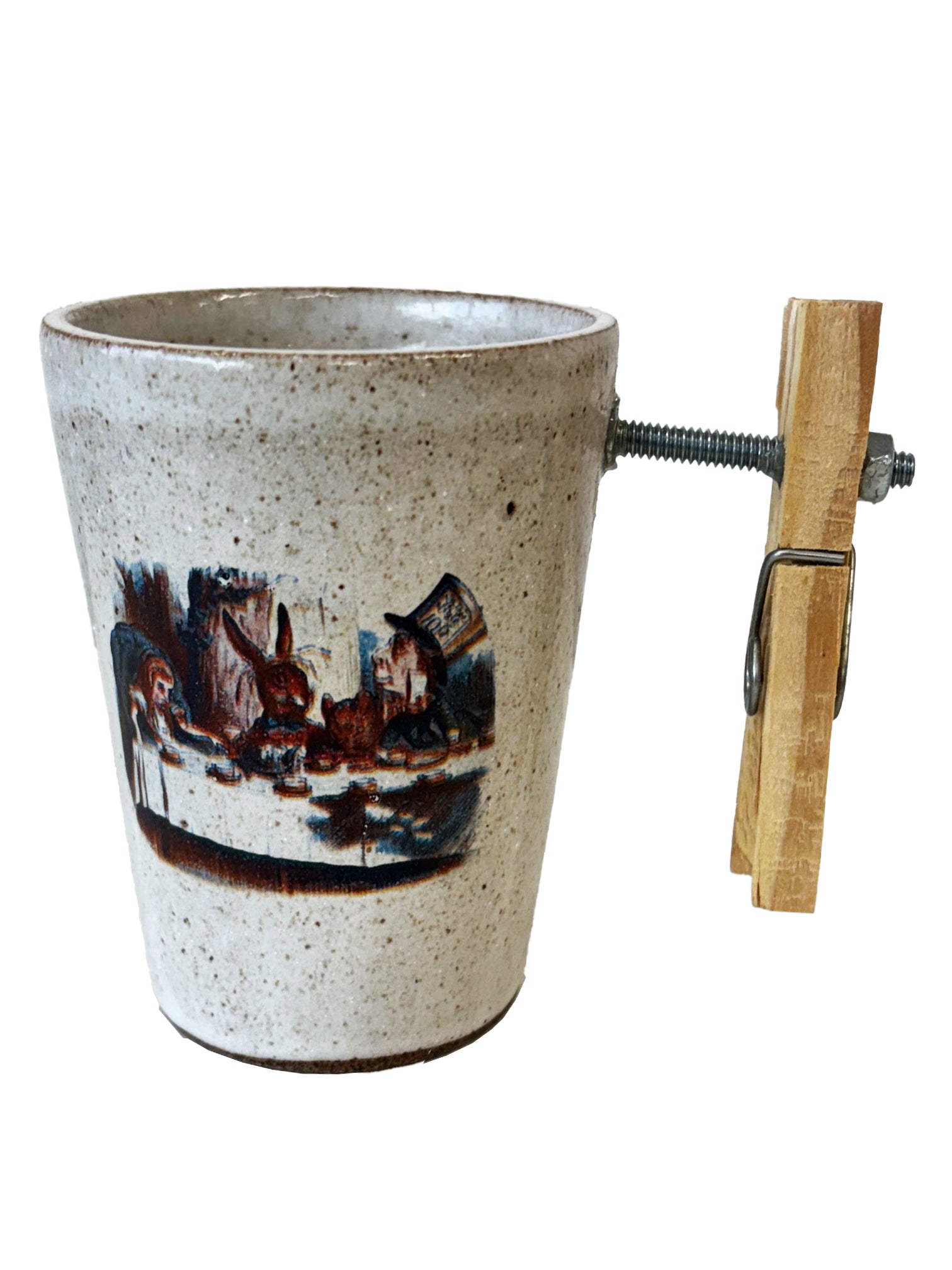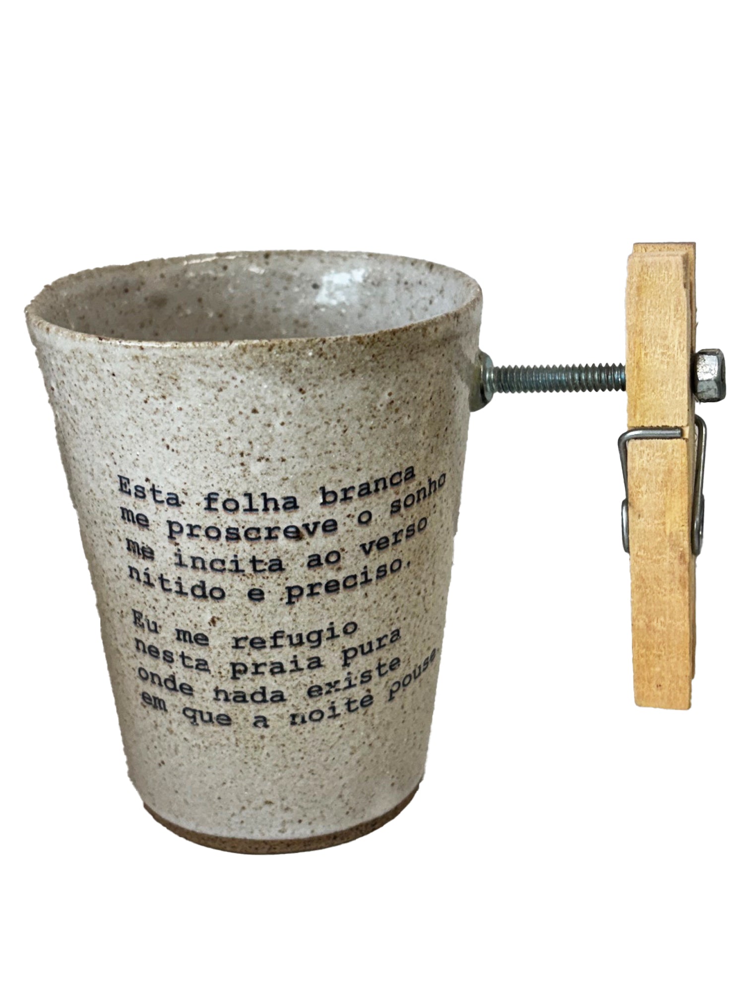Com 9 cm de altura, boca 7 cm, base 5 cm e largura (com a alça) 11 cm, essa caneca engenhosa é feita em cerâmica à mão.