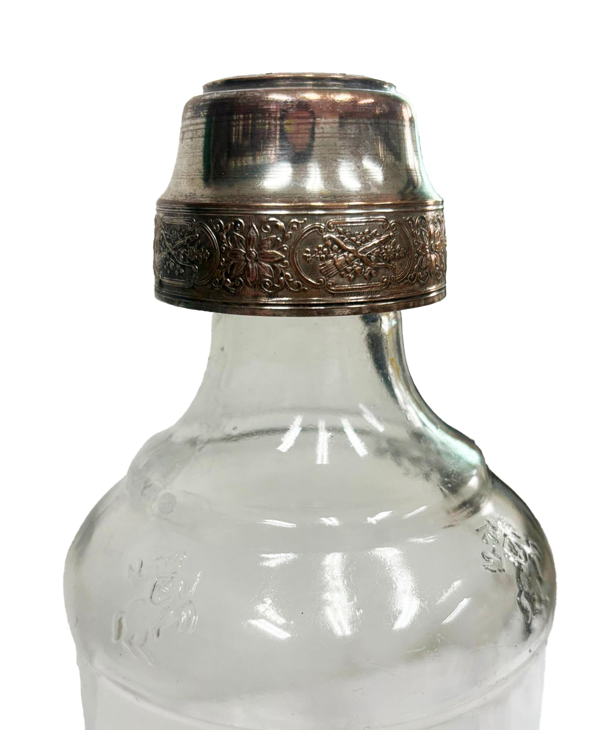 Garrafa com aproximadamente 22 cm de altura, base 9 cm. Leva metal garimpados no topo. Peça única e irreproduzível. Uma vez esgotada, pode ter outra parecida, mas jamais igual.