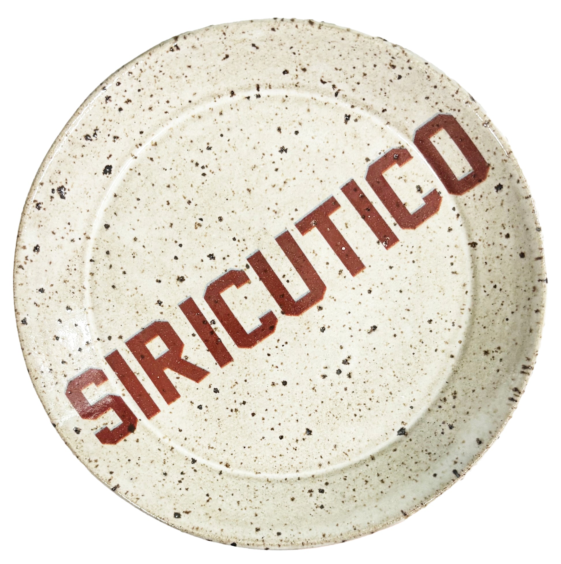 Esse pratinho é feito em cerâmica à mão e mede 13 cm. Acompanha suporte de parede.