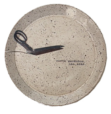Estampa antiga tesoura (simulando um corte) e estampa os seguintes dizeres: Corte excessos, não asas